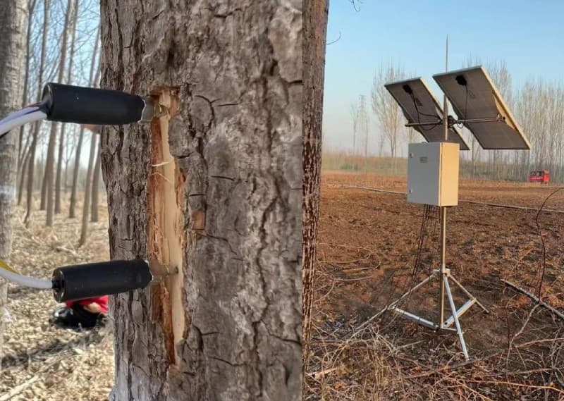 林區生態綜合監測系統由傳感器、數據采集儀和計算機軟件三部分組成??赏瑫r監測樹木直徑生長、樹干液流、植物冠層溫度、葉面溫濕度、樹干傾斜角度、大氣溫度、大氣濕度、土壤溫度、土壤濕度、雨量、風速、風向、氣壓、輻射、照度等諸多要素。